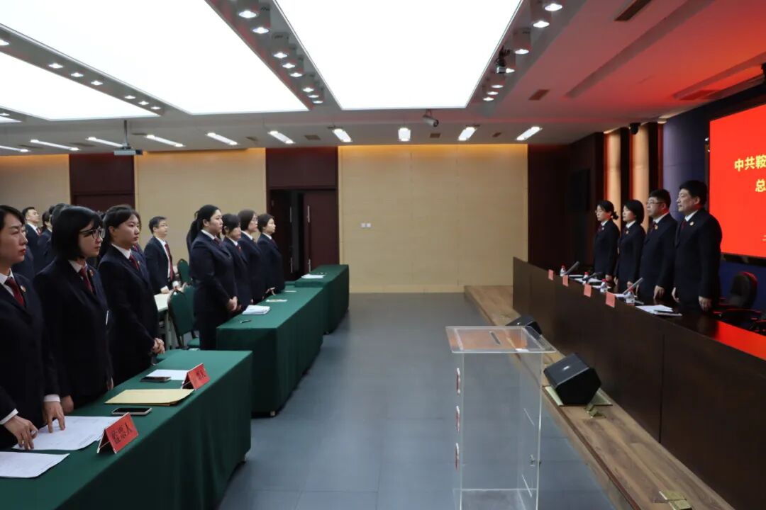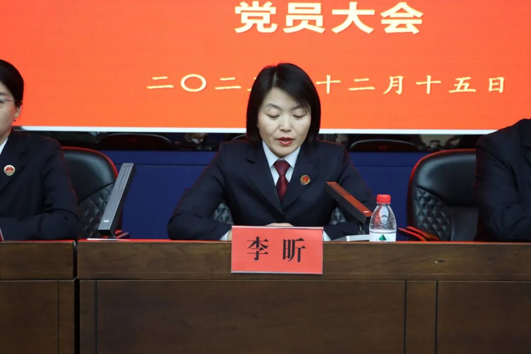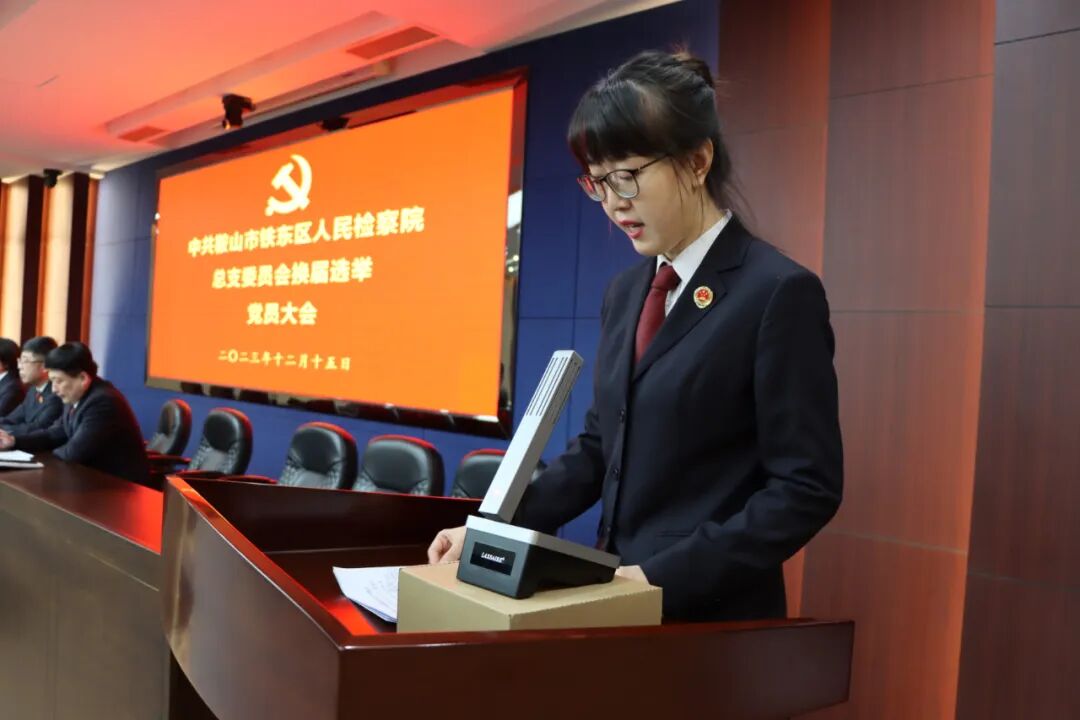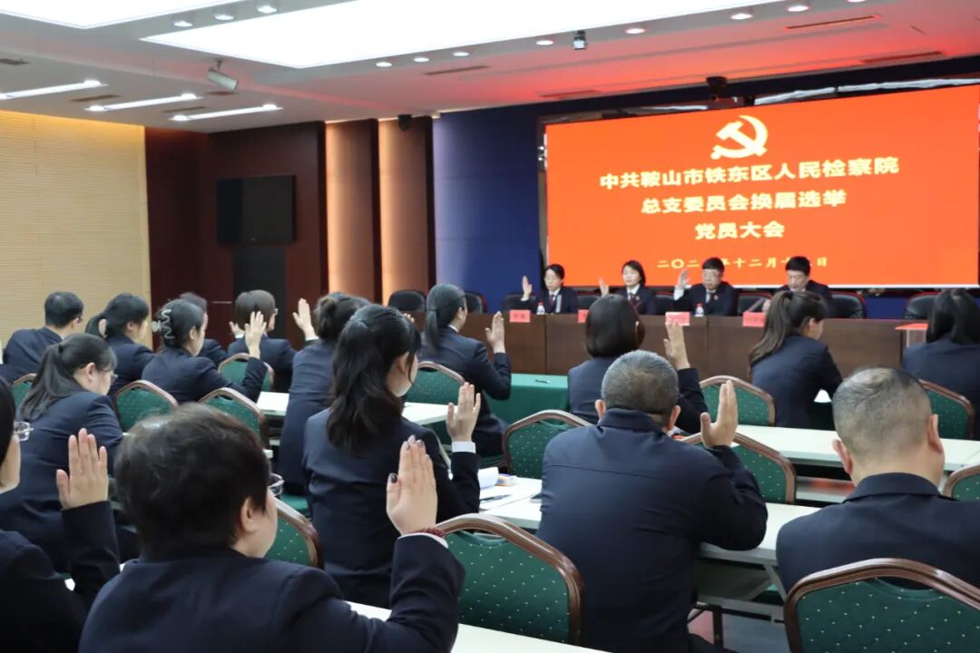 罗娜同志宣读《中共鞍山市铁东区人民检察院总支委员会党员大会选举办法》、监票人、计票人名单、新一届党总支候选人名单。全体党员干警举手表决通过。