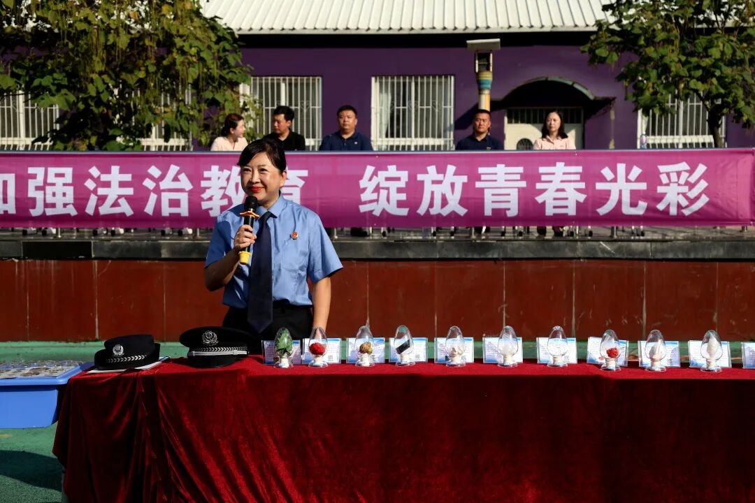 第二环节,由铁东区人民检察院的未检检察官带来精心准备的法治课《我的青春不“毒”行》,检察官通过通俗易懂的语言为同学们讲解了什么是毒品?毒品是如何悄无声息的潜进我们的生活?会造成怎样的危害?并现场展示毒品模具、样本等,还邀请了专门办理毒品犯罪案件的警察叔叔为同学们分享办理过的一些案例及如何自我保护,同时呼吁同学们认识毒品、辨别毒品、拒绝毒品,坚决拒绝第一口毒品。