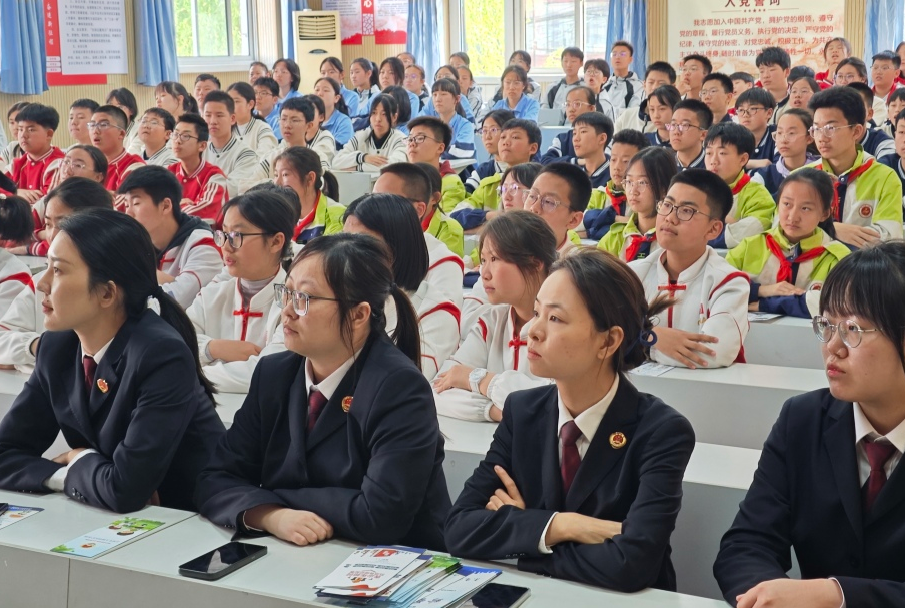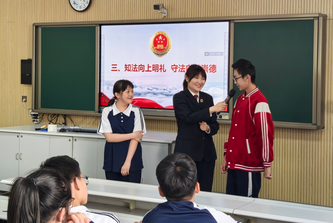 “碰瓷、要钱、校园霸凌都可能涉嫌犯罪!”检察官结合PPT,用漫画和短视频解析“校园贷”“网络暴力”等黑恶犯罪形态。针对影响较大的青少年犯罪案件,检察官通过真实案例进行警示,引导学生自觉抵制有组织犯罪。现场互动问答中,学生们争相抢答应对不法侵害的方法,检察官发放“青少年如何防范有组织犯罪”宣传册并强调:“法律是保护你们的武器,勇敢说‘不’才能远离危险。”