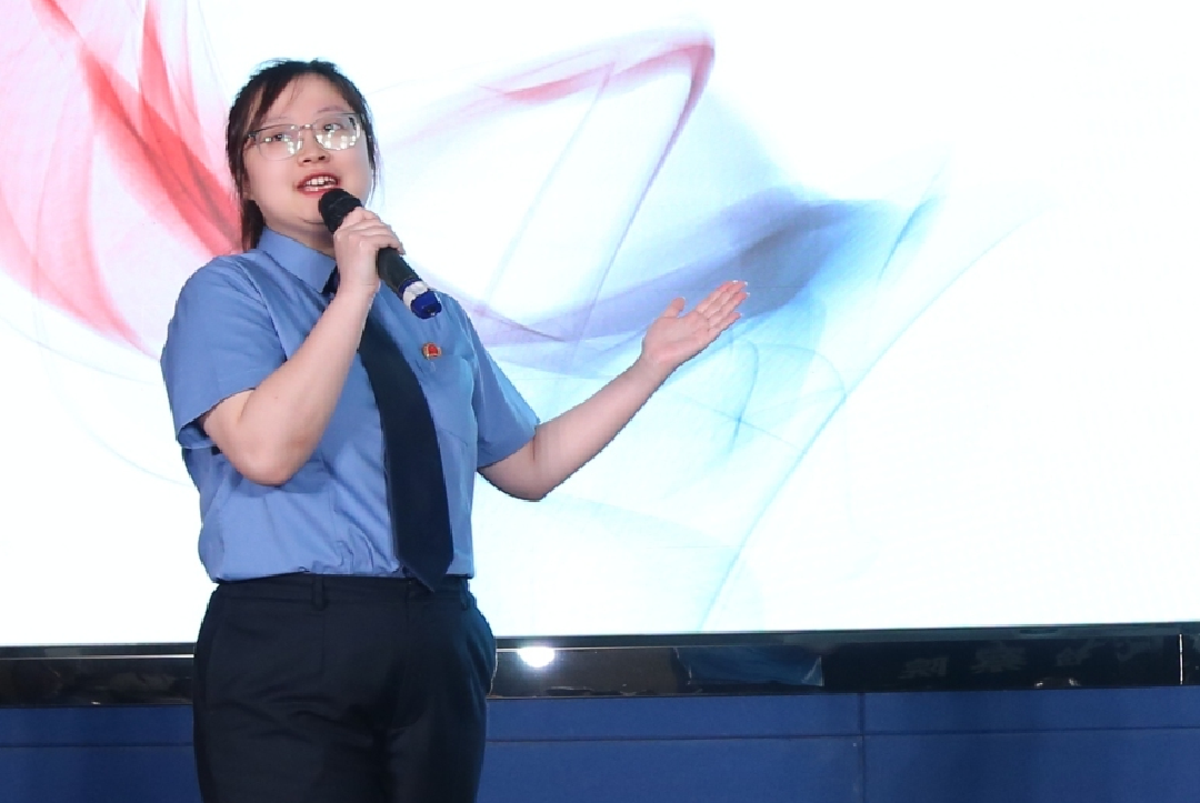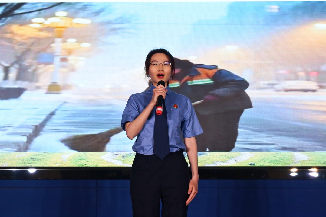 第二篇章“以‘小切口’ 做好司法为民大文章”,干警们聚焦民生“小切口”,讲述温暖人心的司法故事。第二检察部王化冰、杜小涵分享在涉企商标侵权案件中,办案人员打破传统办案模式,坚决打击侵权犯罪、全力护航营商环境的担当作为。第四检察部赵建楠、鲁伊则分别讲述了以公开听证重启赡养亲情纽带,为车祸致残环卫工人仗义维权的暖心历程,现场观众无不为之动容,掌声久久不息。