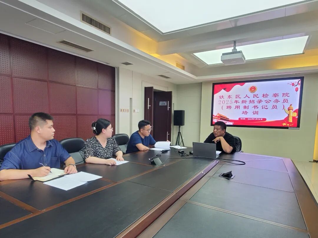 为扎实做好新时代青年检察人才培养工作,引导新入职干警迅速转变角色、更新理念、夯实基础、提升能力、适应岗位,铁东区检察院于7月14日至18日精心组织开展了新入职干警岗前专题培训。此次培训由院领导及业务骨干亲自授课,内容体系完备、形式丰富多元,着力提升新干警的政治素养与履职能力。3名新进干警以饱满的热情和认真的态度,圆满完成了各项培训任务。