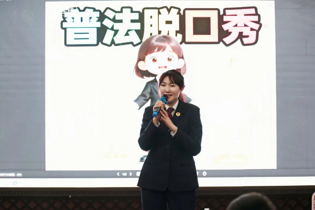 随后,检察官李霓通过脱口秀巧妙融入扫黑除恶主题,金句频出,让师生在轻松氛围中深刻认识到黑恶势力的危害,并齐诵“防黑三字经”筑牢法治意识。闯关游戏竞答环节,同学们手持集章卡踊跃参与,围绕未成年人保护、网络安全、防欺凌及禁毒等主题积极答题,检察官同步解析法律要点,现场气氛热烈。