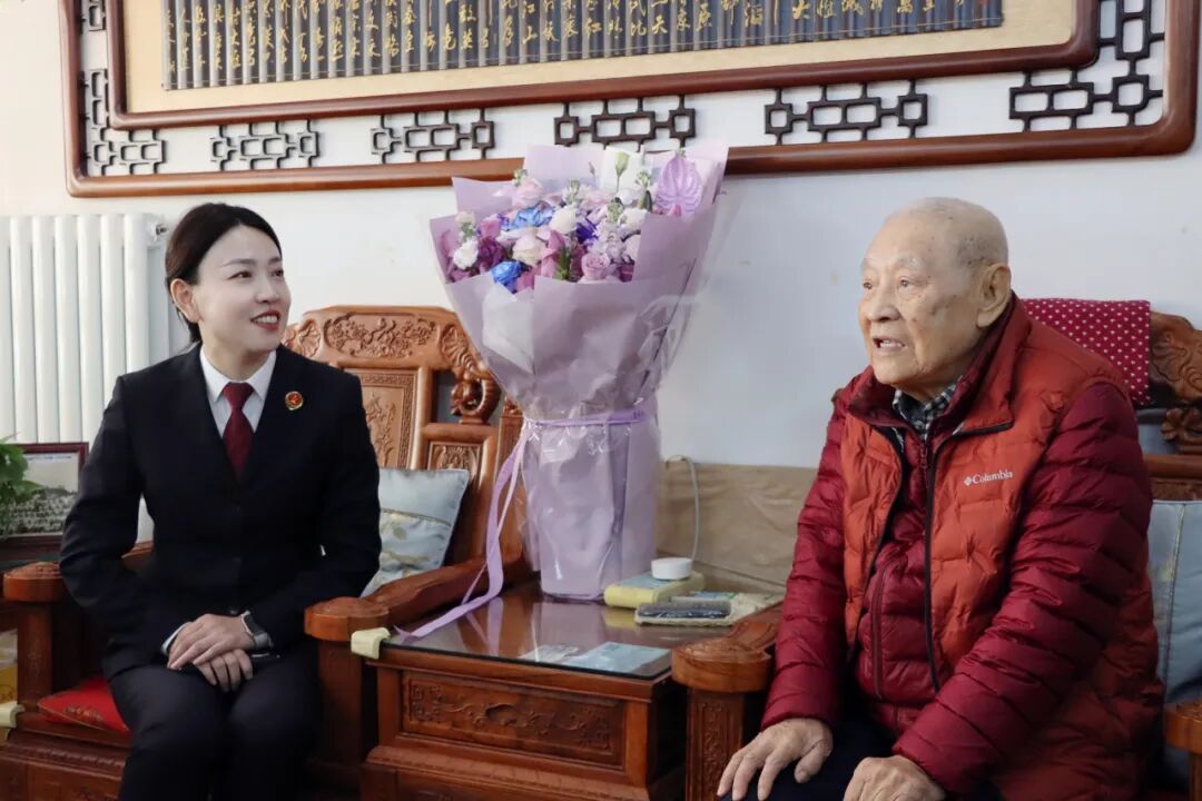 今年9月,当铁东区检察院通过媒体了解到秦耀东老先生的事迹,尤其是得知这位新中国第一代检察人曾与自己脚下的这片检察热土有着深厚渊源时,崇敬与期盼便在心中悄然萌生。重阳节前夕,铁东区检察院党组书记、检察长王祎带着全院干警的牵挂与敬意,走进了秦耀东检察长的家中。