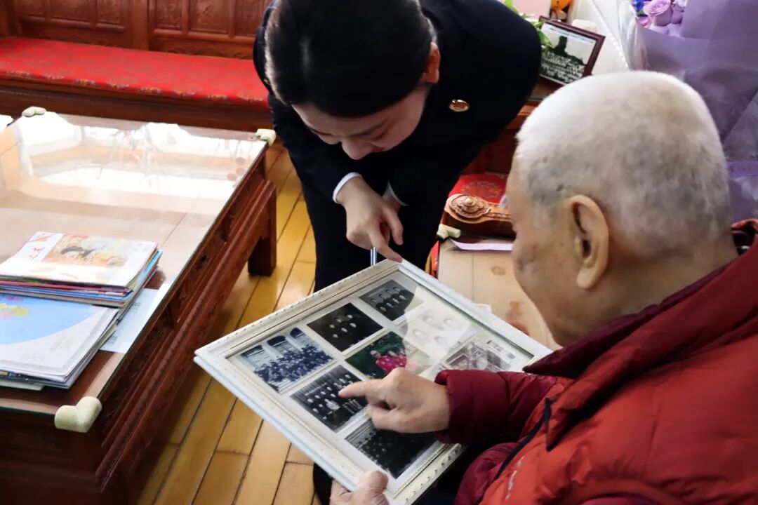 得知老单位的后辈要来探望,秦检早已提前整理好着装,精神矍铄地等候在门口。当现任检察长握住老人温暖的双手,跨越半个世纪的检察情缘在此刻交汇,“传承、坚守、奋进”的铁东检察精神瞬间变得具象而生动。交谈中,秦检缓缓翻开珍藏的老照片,一张张平整干净的影像,串联起铁东检察的峥嵘岁月。他深情回忆着当年在铁东区检察院工作的点点滴滴,言语间满是对检察事业的热爱与自豪,更不忘叮嘱后辈:“做好检察官,首先要知法守法、心有敬畏,才能不负党和人民的信任。”